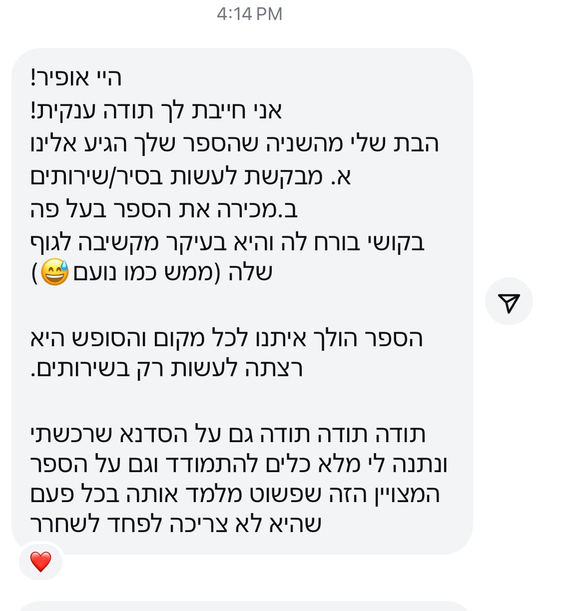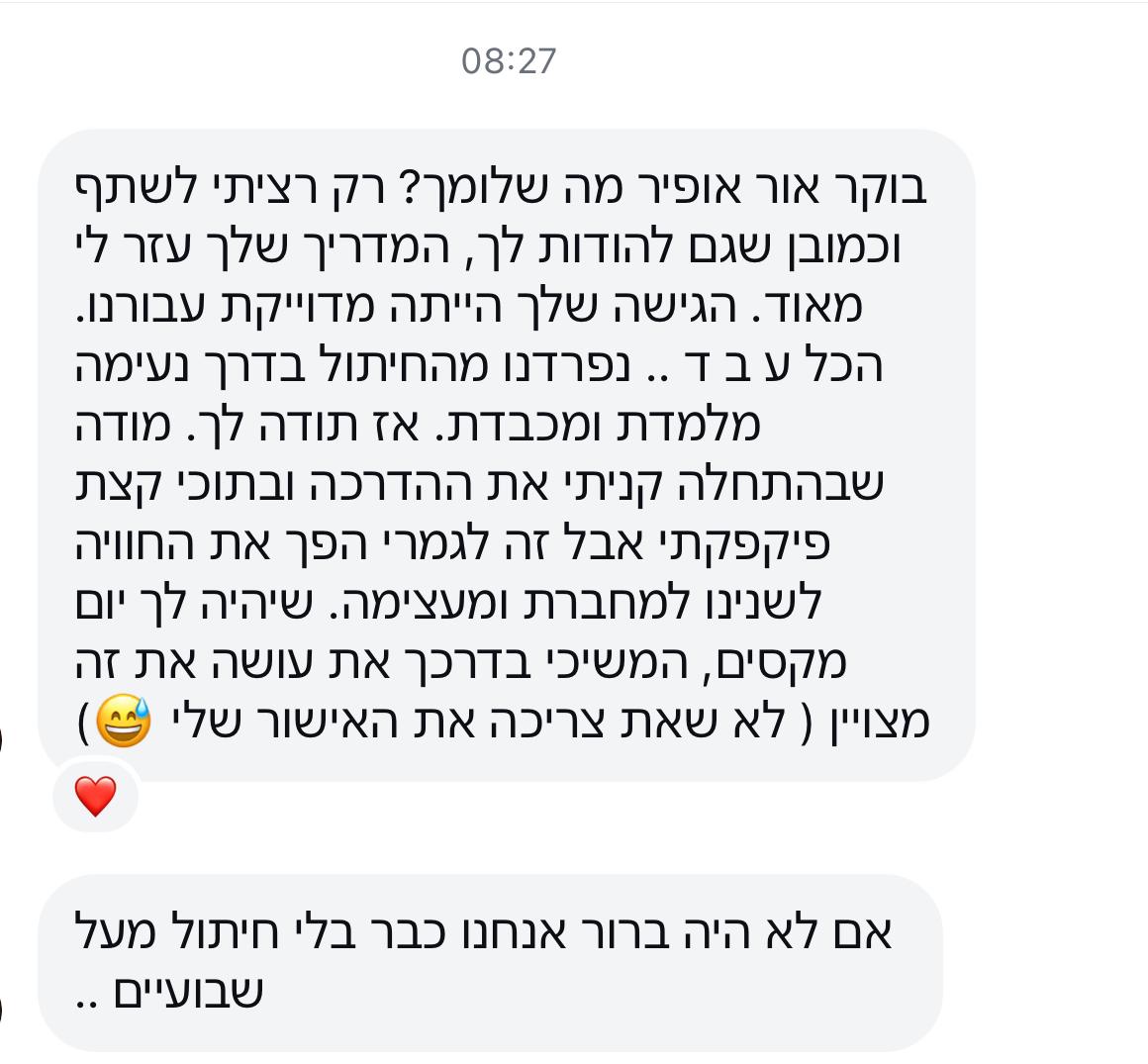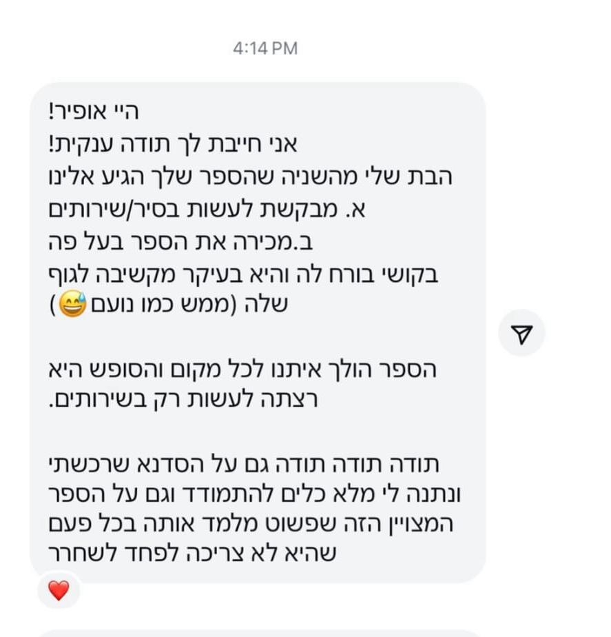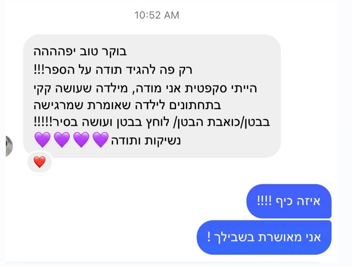 ברוב המקרים כבר מהקריאה הראשונה רואים שמשהו נרגע ומתחיל להתחבר לילד. לא כי הכול נפתר בבת אחת, אלא כי הוא סוף־סוף מבין מה קורה לו בגוף. מכאן זה תהליך. כל קריאה מחזקת עוד קצת את ההבנה, עוד קצת את הביטחון, ובהדרגה הדברים מתחילים לזוז. בלי הבטחות קסם, בלי לחץ – פשוט התקדמות טבעית בקצב של הילד.