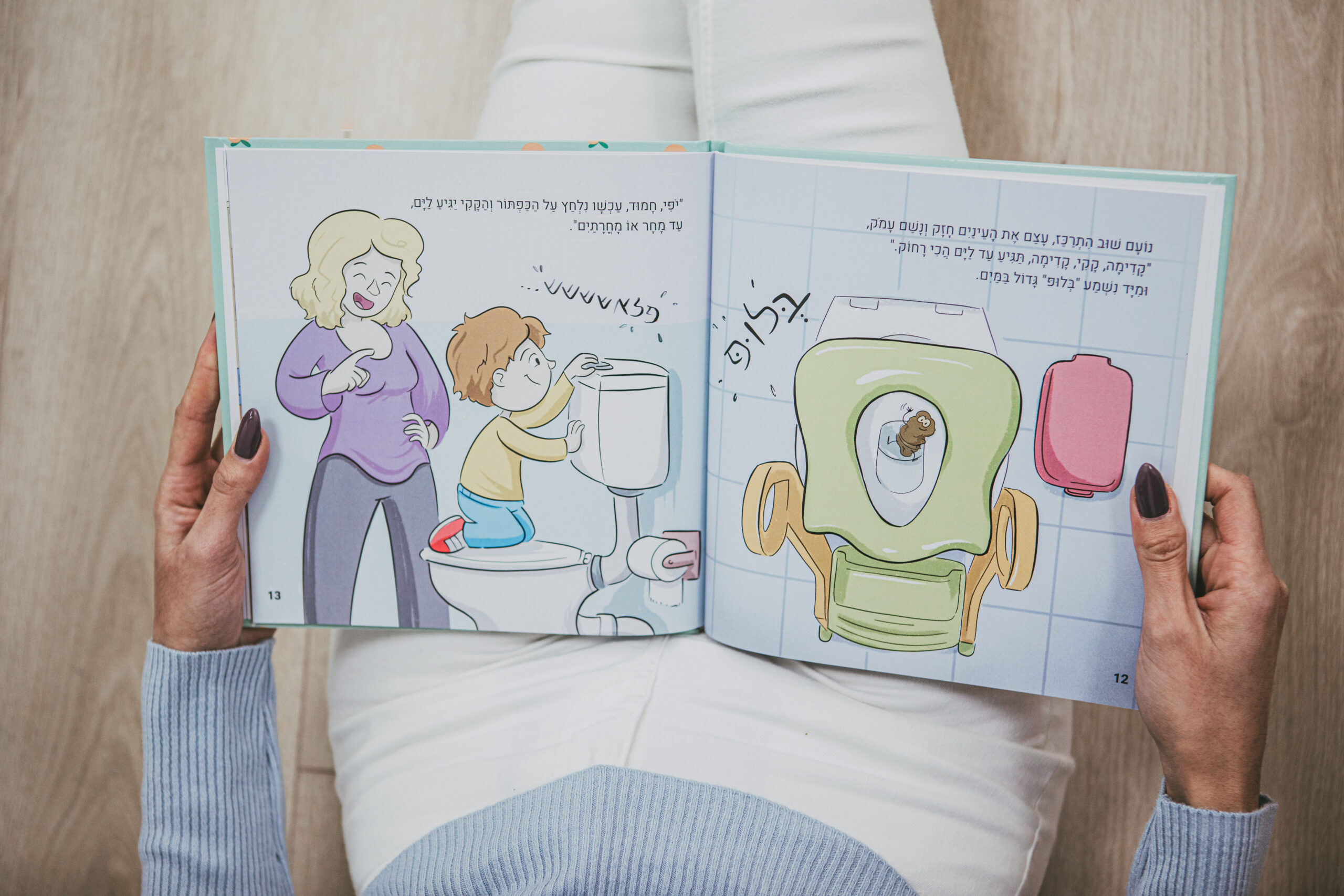 ספר ילדים צבעוני, קליל וחכם שמסביר לילד מה קורה בגוף לפני צרכים, איך מודיעים בזמן, ואיך להתמודד עם הפחד מהשירותים.