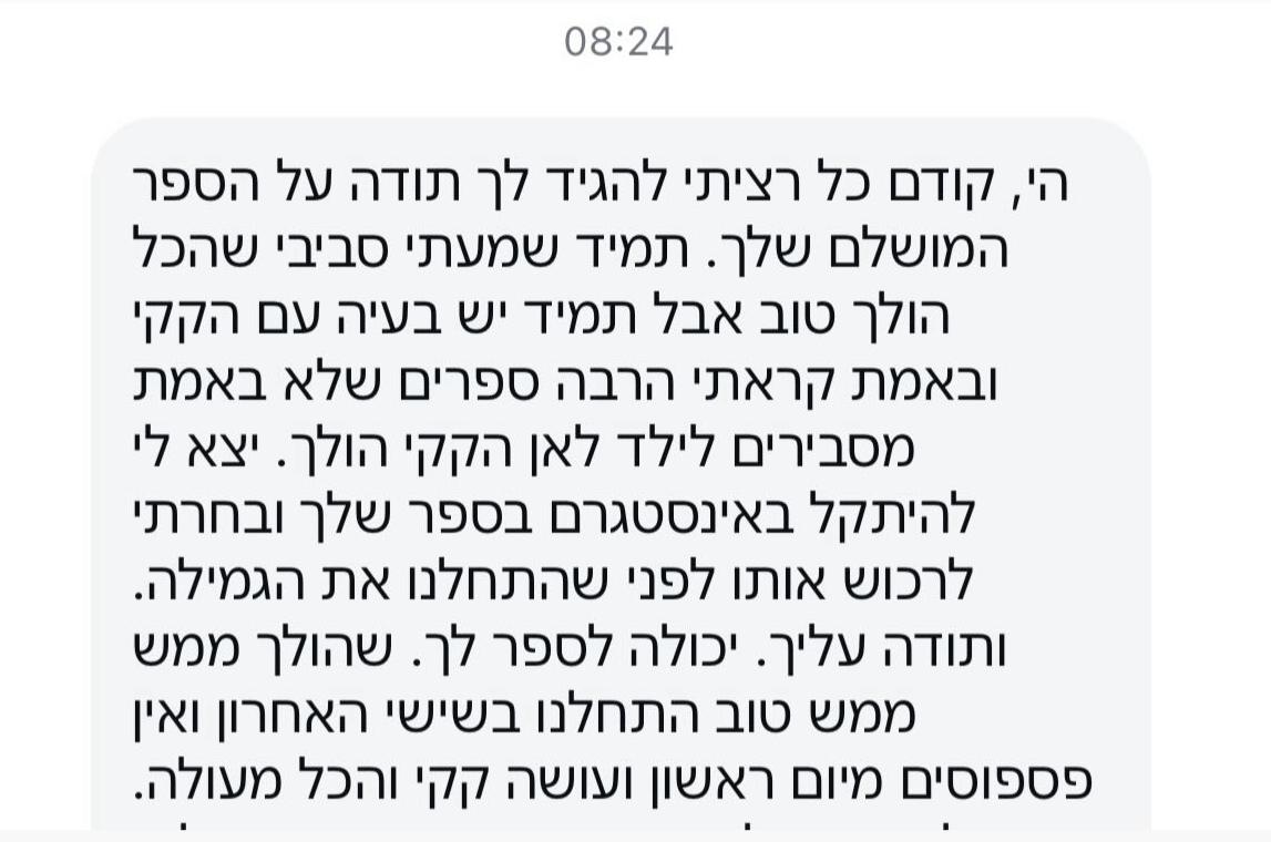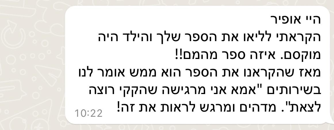 ולא רק זה, ההורים לומדים מתוך הספר שפה חדשה ומעצימה, כזו שהם יכולים להשתמש בה בבית כדי לקדם את התהליך. זאת לא אמירה תאורטית ולא עוד ספר ילדים, אלא כלי עם עומק: יש בו המון עקרונות ואלמנטים של תהליך גמילה תקין ובריא לילד, כאלה שמלווים אותו בפועל ולא נשארים רק על הדף.