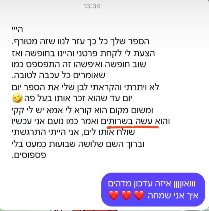״הלוואי שהייתי מכירה את הספר הזה קודם – זה היה חוסך לנו הרבה זמן ותסכול.״